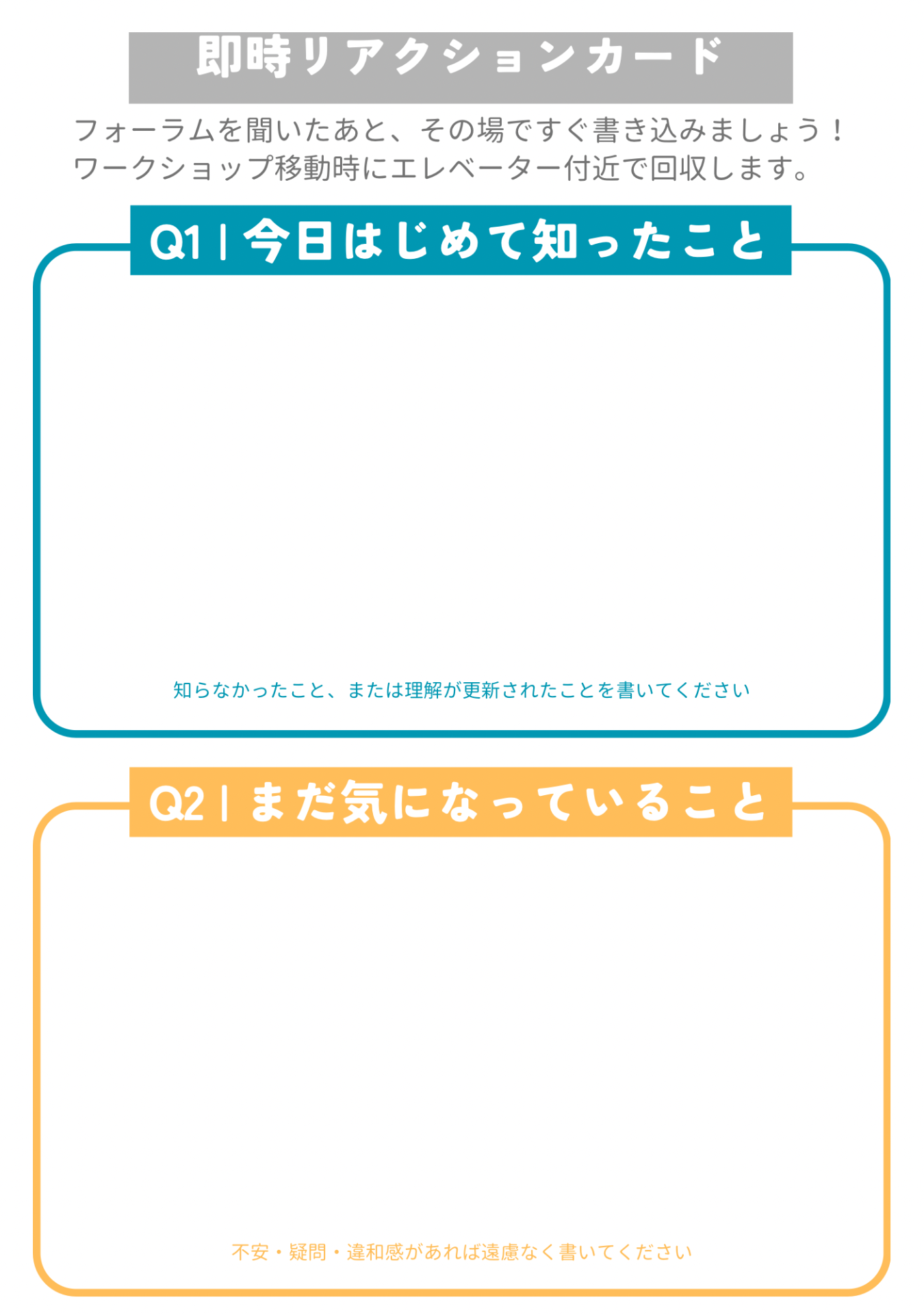 発表終了後すぐに、参加者さんに「即時リアクションカード」を作成してもらいました。