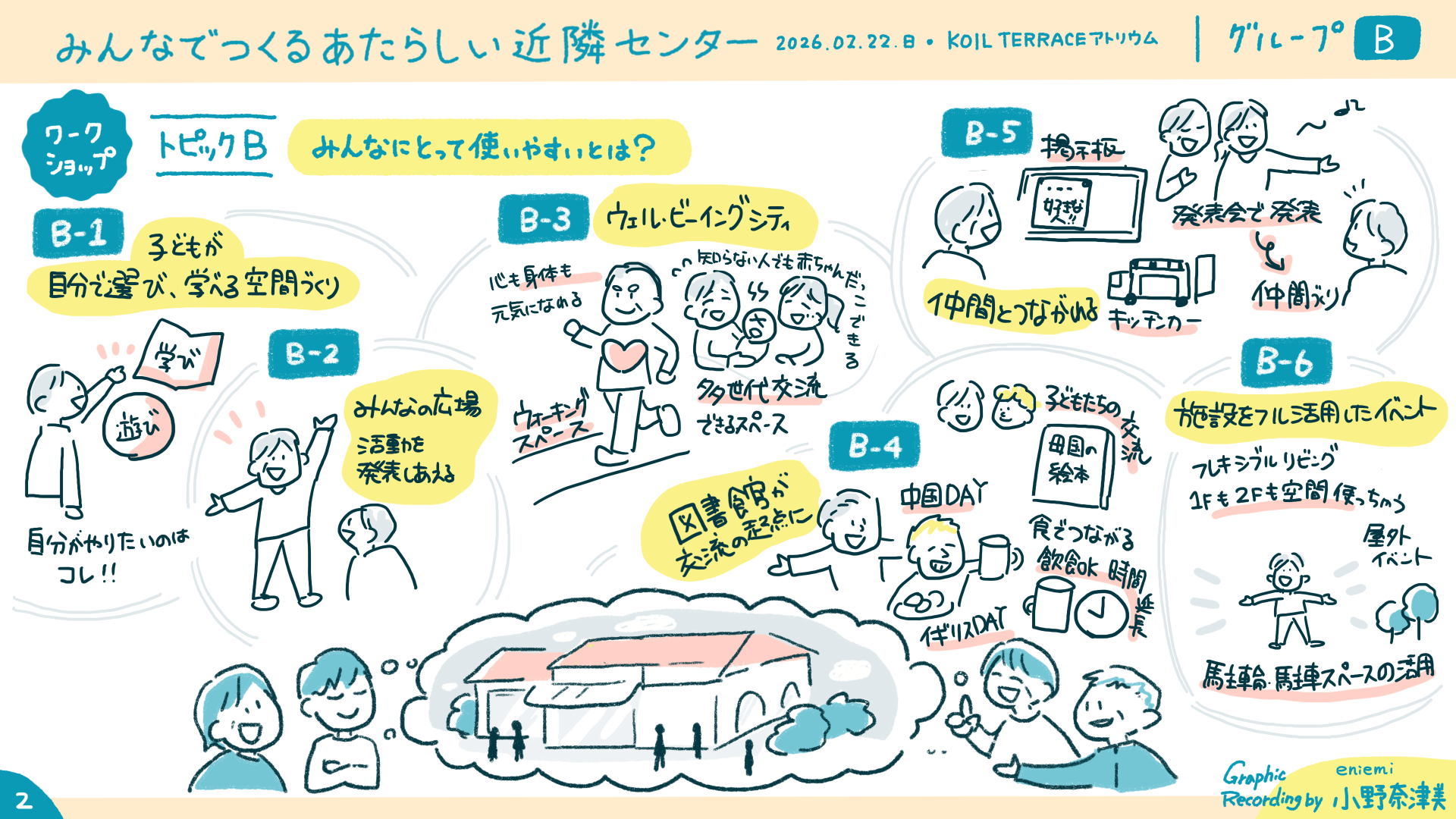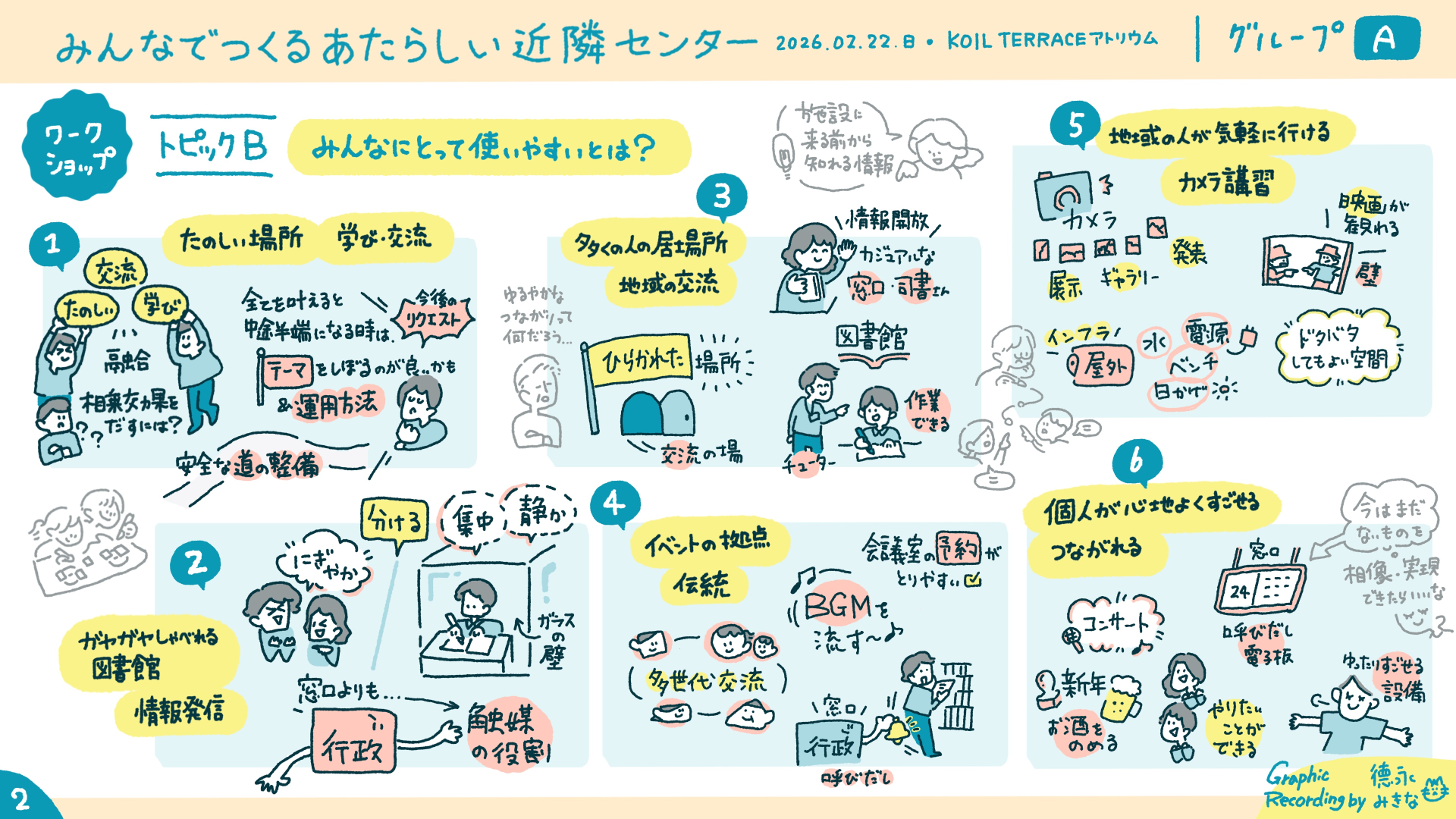 部屋ごとのグラフィックレコーディングを共有します。